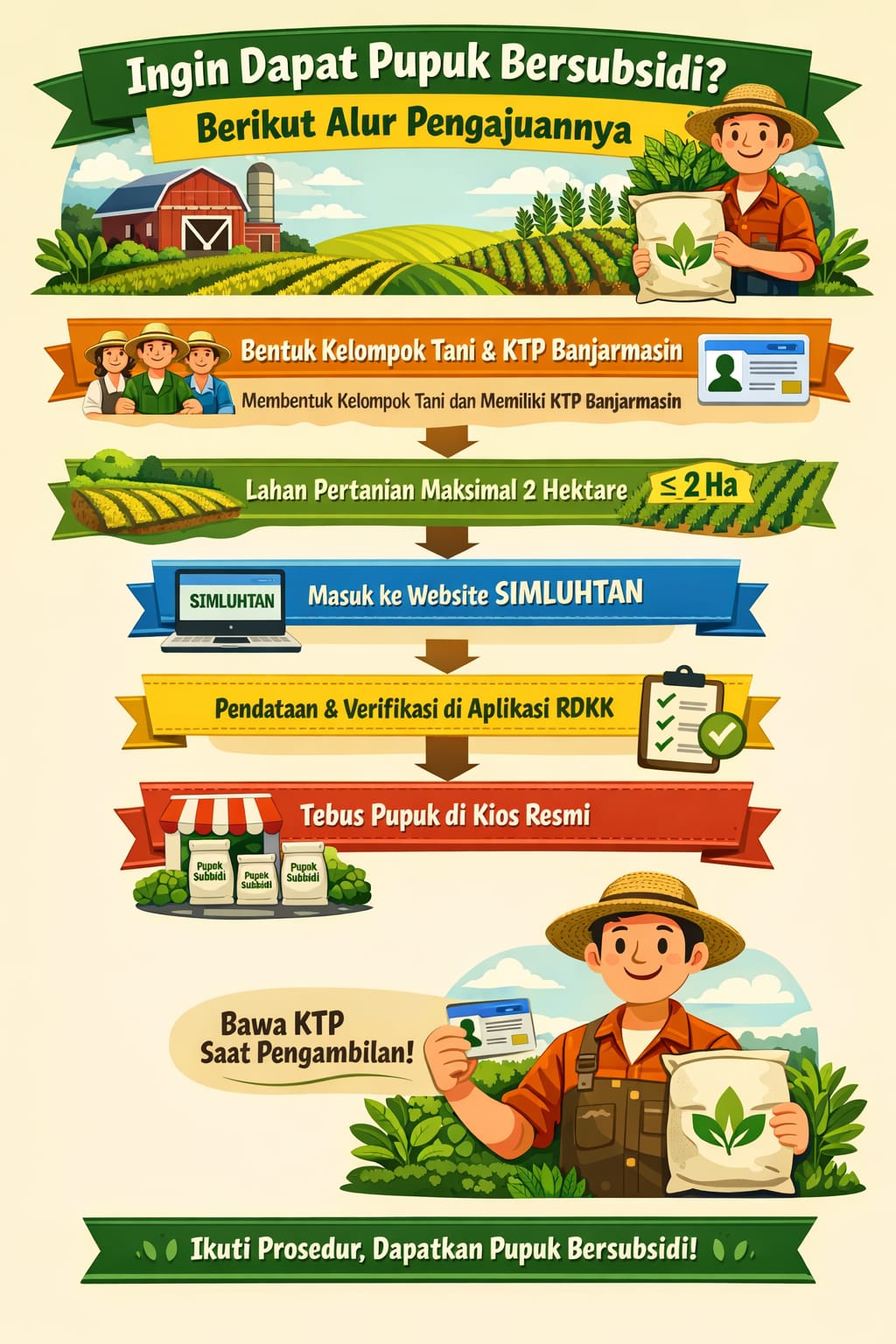 Itulah alur pengajuan bantuan pupuk bersubsidi dari pemerintah yang harapannya membantu petani-petani di Kota Banjarmasin yang sedang kesulitan mencari pupuk.