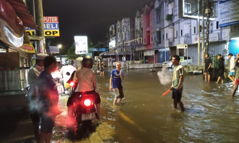 KANALKALIMANTAN.COM, BANJARMASIN — Banjir rob alias pasang muka air laut mengepung sejumlah jalan besar di Kota Banjarmasin, Minggu (4/1/2026) malam.