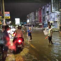 Hal itu menarik inisiatif relawan gabungan terdiri dari barisan pemadam kebakaran dan warga sekitar membantu arus lalu lintas yang terdampak banjir rob sejak Sabtu (3/1/2026) malam.