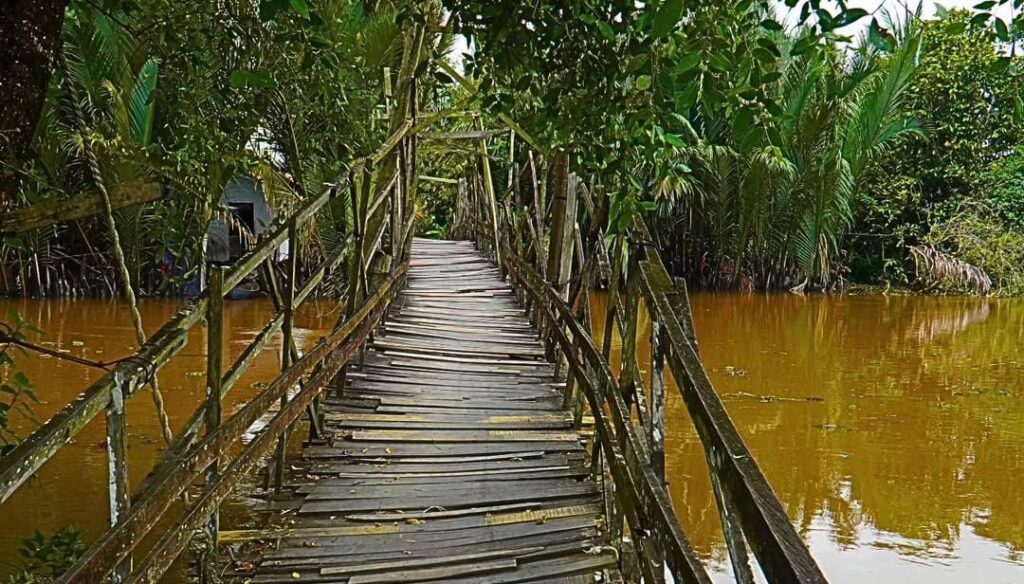 Perjalanan dilanjutkan ke Jembatan Sungai Bahaur di Jalan Tembus Mantuil Basirih. Salah satu warga, Titi Sahra mengaku selama puluhan tahun sejak dirinya masih kecil jembatan tersebut sering dilalui truk minyak. “Jembatan miring ke bawah, kayunya sudah lapuk,” ujar Titi.