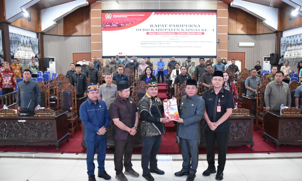 KANALKALIMANTAN.COM, KUALA KAPUAS – Dewan Perwakilan Rakyat Daerah (DPRD) Kabupaten Kapuas menggelar rapat paripurna dengan agenda penyampaian Laporan Keterangan Pertanggungjawaban (LKPj) Bupati Kapuas tahun anggaran 2025 dan penyampaian 10 buah Rancangan Peraturan Daerah (Raperda) Kabupaten Kapuas, Kamis (26/3/2026).