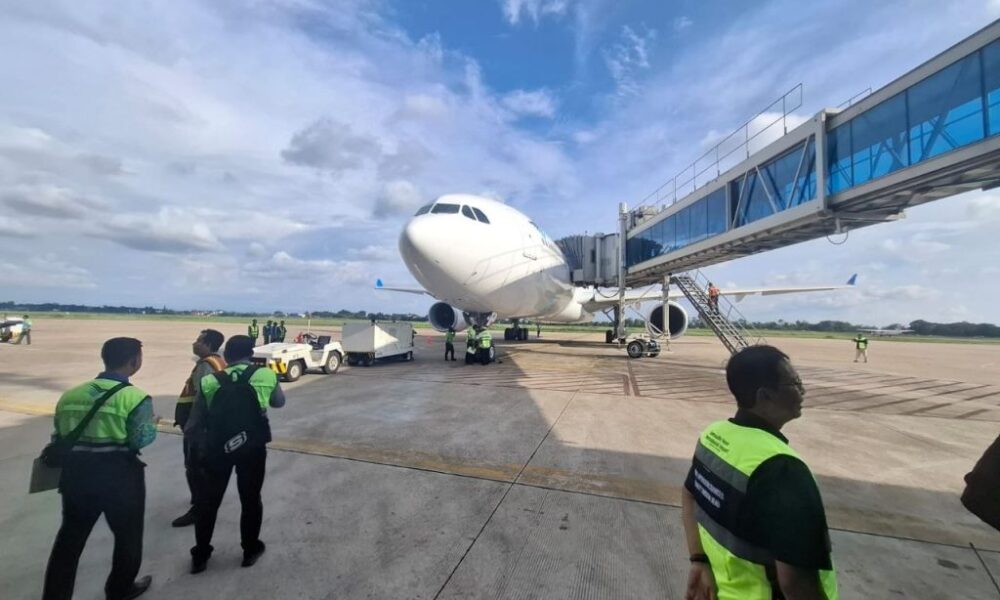 Rabu (22/4/2026) pukul 16.20 Wita pesawat Garuda Indonesia dengan nomor penerbangan GA8881 tiba di Bandara Internasional Syamsudin Noor. Pesawat bersiap untuk membawa jemaah dari Banjarmasin ke Jeddah mulai Jum’at dini hari.