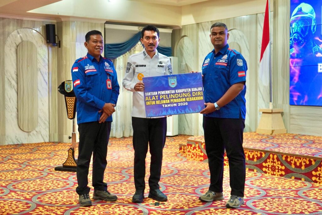 Pada kesempatan tersebut, bupati Banjar menyerahkan secara simbolis bantuan pemerintah daerah berupa alat pelindung diri (APD) bagi relawan pemadam kebakaran tahun 2026 kepada Ketua Umum Buser 690.